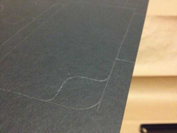 6. en el lado opuesto de la cámara, marcar un área a recortar para agarrar fácilmente el teléfono para quitar.