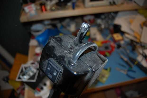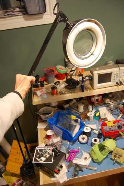 Mi mesa de trabajo/escritorio es especial; tiene 2.5" pedazo de ancho de madera reconstituida que hace usando la abrazadera incluida imposible. Por lo tanto, formó un bloque de madera que acepta el "peg" en el extremo de la lámpara y puede montarse en el borde de la mesa.