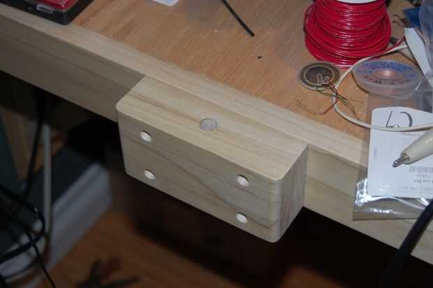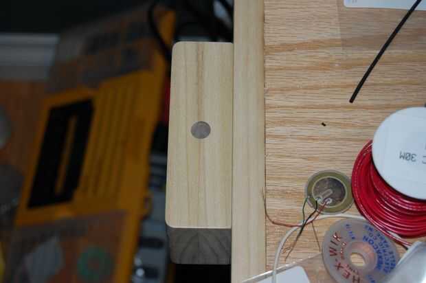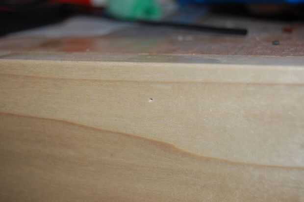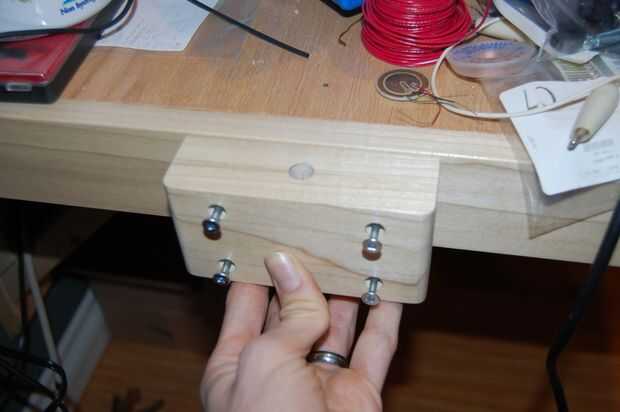Empuje el soporte contra la superficie que se adjuntará. En mi caso, que es el lado de mi escritorio. Los puntos de cuatro tornillo hará muescas que indican precisamente donde taladrar los orificios piloto.