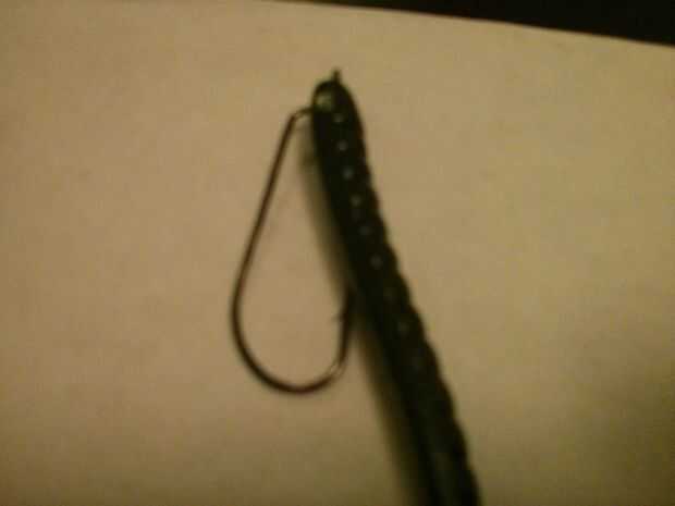 su van la pierce el gancho lanzó la parte superior del gusano aproximadamente medio centímetro y deslice el gusano hasta llegar a los ojos de su gancho