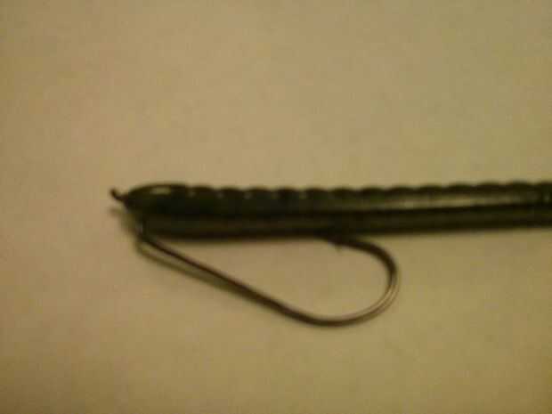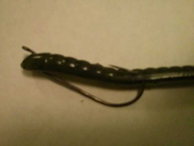 una cosa clave para esta plataforma de Texas está haciendo Weedless... hasta tomar el gusano y llevarlo a la punta de su gancho en la punta está alineada con el gusano perfore a través de ese punto una