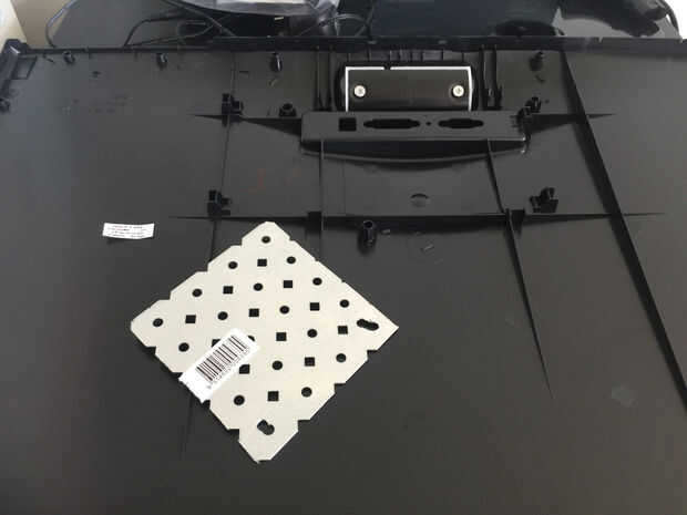 2) perforar y cortar el soporte como sea necesario, asegúrese de Sopletee cualquier virutas como ciertamente no desea que estas cerca de las eléctricas del monitor.