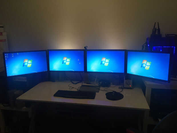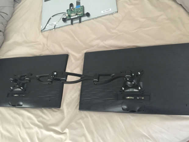 4) Atornille el tornillo solo en, montaje del LCD de los brazos sobre los soportes del escritorio y hey presto. Ha duplicado lo que algunas personas tontos pagan miles de