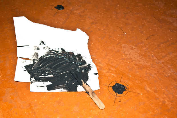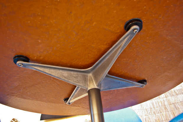 Luego probé un adhesivo de grado militar de Smooth-On llamado Metalset A4. Este material es increíblemente fuerte, y es el único adhesivo puedo recomendar ahora mismo (Douglas y Sturgess tiene en la plataforma si estás en el área de la bahía). Usted puede pigmento negro, que es el color de la mayoría de los adhesivos originales (aunque tengo una silla con el pegamento blanco). Así que Metalset A4 mezcla 1:1, vierta un poco de pigmento y mezclar todo junto hasta que quede un color uniforme.