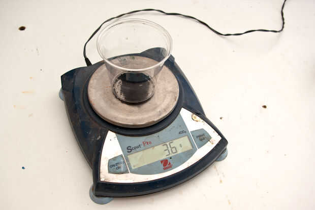 Para hacer 4 de estos montajes de choque, yo soy mezclar 120 gramos de total de goma, que significa que la ocupación máxima es de 3,7 gramos de pigmento. Utilizar una escala exacta si tienes uno. Asegúrese de que a cero la escala hacia fuera en el contenedor (la taza de plástico) antes de pesar. Si usted no tiene una escala, solo ve por ella y ver qué pasa.