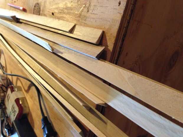 Las calzas fueron cortadas de una de las longitudes del repuesto de la madera. Combinamos varios en cada dado ya que no todo lo que práctico a hacerles la misma longitud que cada tira.