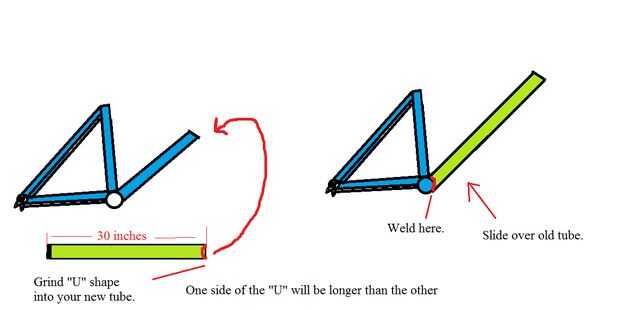 Me di cuenta de que las otras personas que ampliaron su marco lo hizo exactamente 2 X su tubo inferior. Así 16 en X 2 = 32., comprar un tubo nuevo que apenas se deslizará sobre le original tubo de fondo y asegúrese de que el nuevo tubo es de 30 pulgadas. Este método es más seguro y es más fácil de hacer.