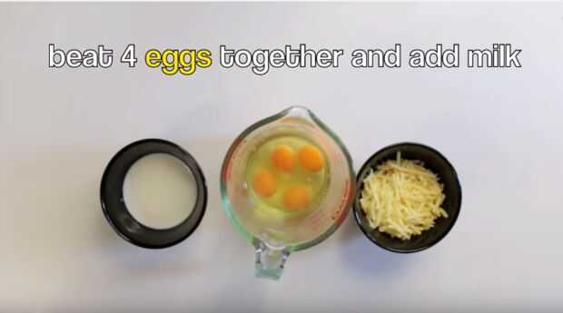 Bata los 4 huevos y añadir la leche.