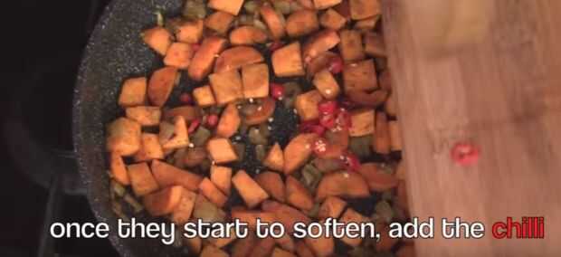 Agregar las batatas y zanahorias.
