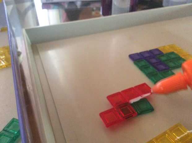 Asegúrese de que sólo están pegando las esquinas y los lados de las piezas que les pegan. Hacer esto para ambos cuadrados.