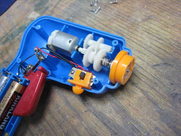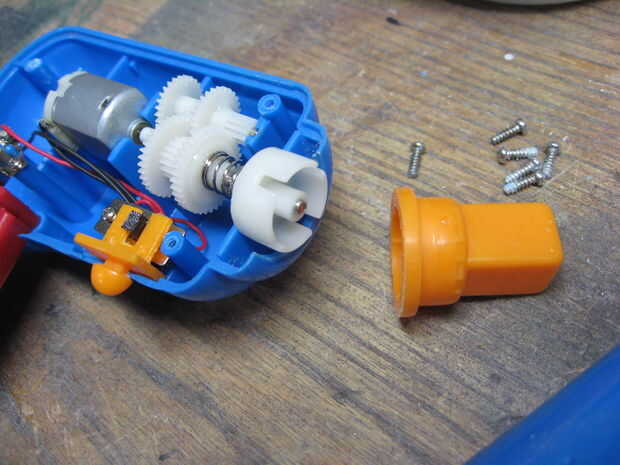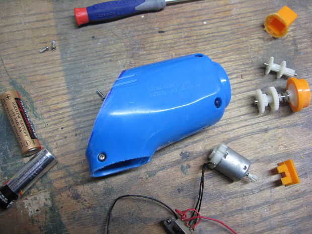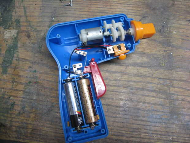 Este taladro de juguete resultada funcione a la perfección para este proyecto, que fue orientado al giro y a la velocidad adecuada para esta aplicación.
