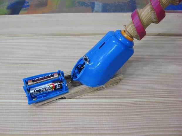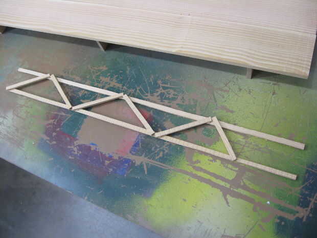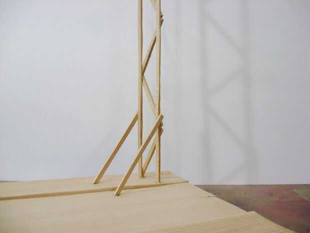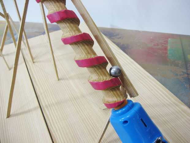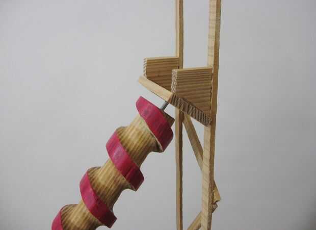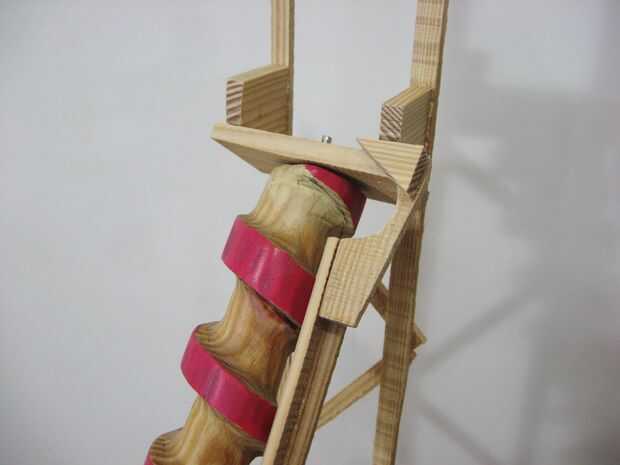 Comencé por crear una torre para mantener el extremo superior del madera tornillo. Trozos de madera fueron recortados con la sierra como necesario y pegadas en su lugar con pegamento caliente.
