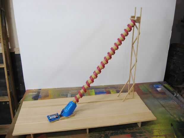 El montaje del motor estaba montado en una base pequeña, y después de algún ensayo y error me decidí por una posición adecuada para la el motor y la torre. Estas fueron pegadas en su lugar, y el tornillo se montó entre los dos.