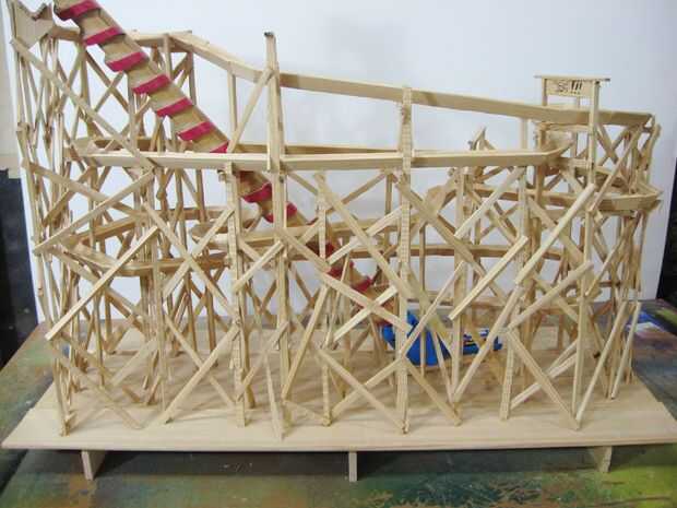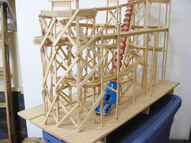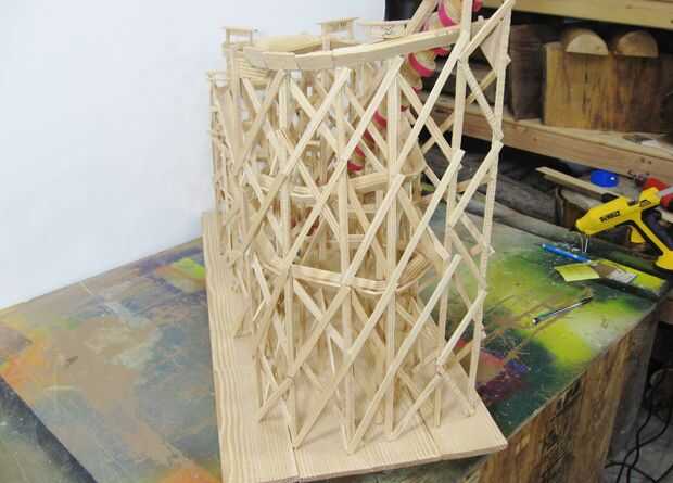 Esto es donde finalmente empezó a ver como una vieja montaña rusa de madera. Añadiendo estos travesaños fue una diversión poco ejercicio en ingeniería, ya que realmente transformar la pista tambaleante en una forma sólida y rígida.
