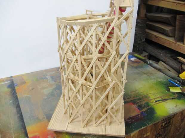 Comencé en la parte trasera de la montaña añadiendo a travesaños diagonales entre los soportes verticales. Al principio, les pegué sólo al azar en su lugar, pero funcionó a la derecha y trasladar al frente, comencé a establecer un patrón de aspecto más uniforme.