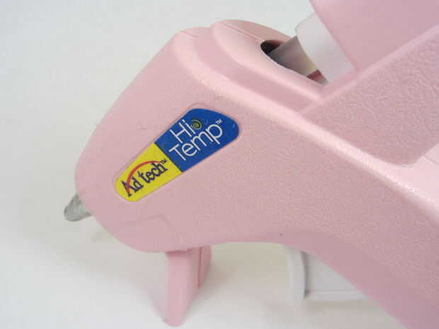 Una pistola de pegamento caliente con palillo caliente del pegamento