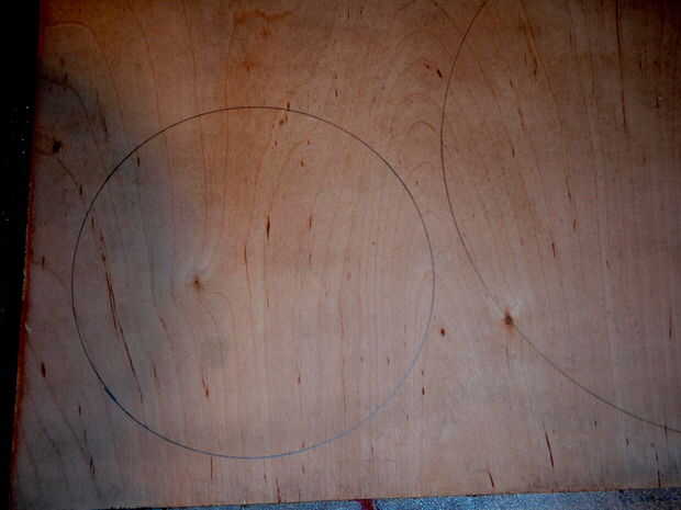 Comencé con una serie de 9 tamaños de círculos que he encontrado alrededor de la casa; plato de pizza, plato, plato de ensalada, plato, platillo, etc. Cada uno de los 9 círculos fue marcado en una hoja de madera contrachapada y dos hojas fueron atornilladas con tornillos cortos. Los tornillos fueron unir la madera así que pude corte 9 círculos dos capas. Me corte con una sierra de sable luego alisar los bordes en una lijadora de banda. Después de que los círculos gemelos eran del mismo tamaño fueron separados. Un lado iba a ser la base para el rompecabezas y el perímetro.