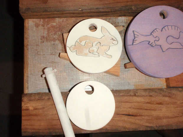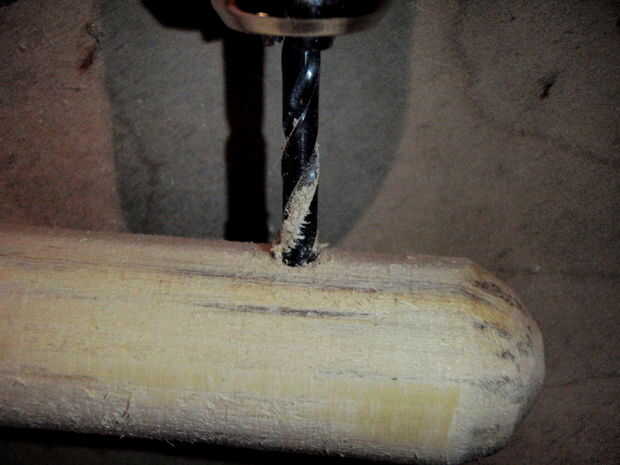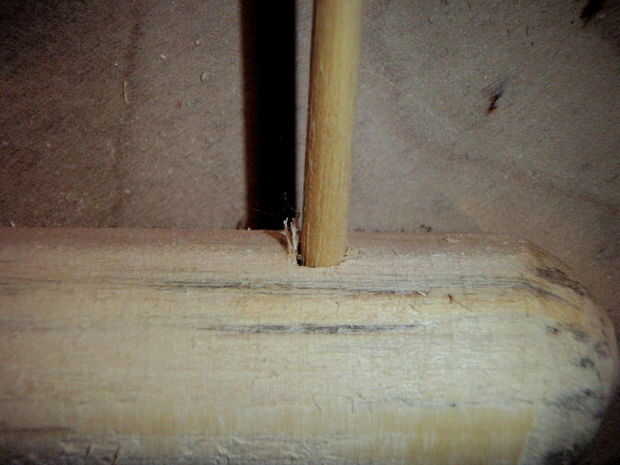 Un taco de 1" fue redondeado y un 3/16 agujero perforado cerca del final. Una espiga de 3/16" fue pegado en el extremo como una T. Esto era hacer posible para el transporte y no tiene todas las piezas separadas. El pequeño disco final no fue un puzzle era solo para cubrir el conejo para que no los pedazos sueltos estarían expuestos.