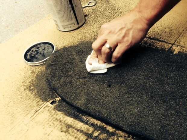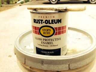2. la junta con una gruesa capa de pintura de esmalte negro, para la arena mezclar en la pintura.