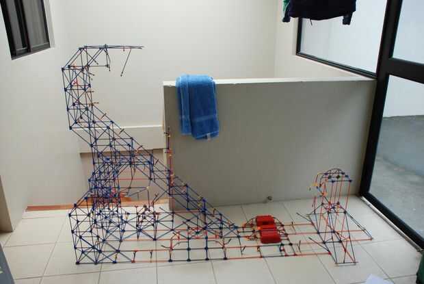 3,5 ft vertical montaña rusa creada a partir de K'Nex. El tiempo de construcción fue alrededor de 3 horas. Esta montaña rusa es un diseño totalmente original.