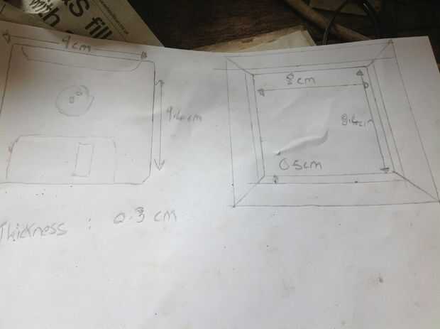 Había una gran selección de colores utilizado en disquete discos así que ¿por qué no ir para algo brillante? Aunque usé negro... Se puede ver en los planes que un disco flexible es de 9x9.4 cm así que sentarse correctamente en el marco. Disminuí las medidas por un centímetro por lo que sería un 0,5 cm corte alrededor del interior del marco, lo suficientemente profundo para el disco de ajuste en línea con el marco.