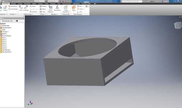 Ahora a juntar todas las piezas. Pulse nuevo ensamble y coloque todas las piezas que creaste (no olvide colocar las paredes regulares tres veces). Ahora, empezar por poner las paredes en la parte inferior mediante la herramienta de restringir en la barra de herramientas. Haga clic en la superficie de los dos objetos que se tocarán unos a otros. Ahora para hacerlo incluso, presione la opción en el menú restringir que se parece a 2 cuadras de lado a lado creando una superficie plana. Hacer este varias veces para obtener las paredes centradas. Hacer esto para todas las paredes, incluyendo la pared donde la montaña dispensa de. Ahora para agregar la parte superior, uso restringir otra vez a poner la tapa encima de las paredes. Ahora usted tiene que moverse a sí mismo. Desde el frente del círculo está superponiéndose te necesita para mover con el ratón atrás muy poco hasta que el círculo no es comprometido ya.