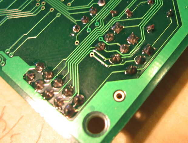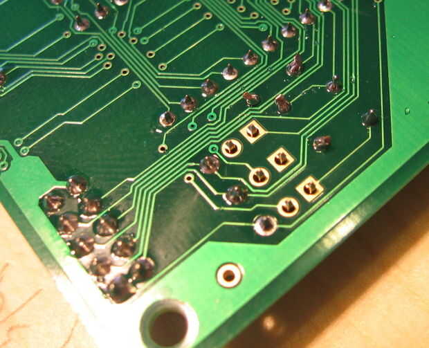 6. Voltee la placa y soldar un perno de cada encabezado.