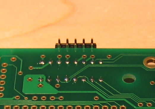 2. la soldadura de uno de los pines de cada encabezado. Comprobar que cada encabezado quede al ras con el tablero y es vertical.