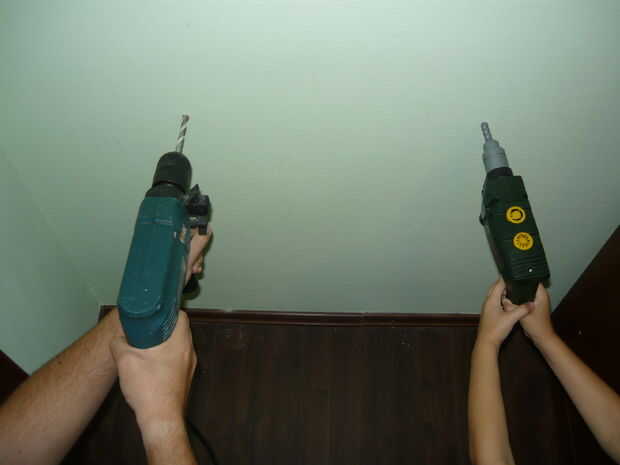 quería tener un lugar para garantizar mis armas de fuego que no era visible todo el tiempo, así que subió con la idea de una empotrada en la pared del gabinete arma que funciona como un espejo de cuerpo completo. Quería dar un paso más con un teclado