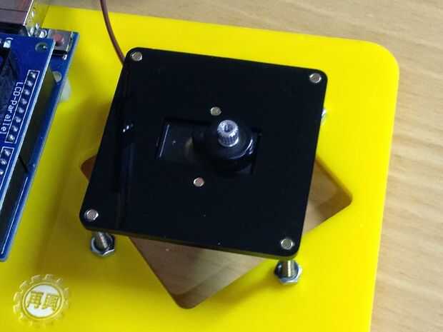 底座舵機標準接法的出線位置是往後, 但在調整過配重與舵機齒輪連接位置於外側後, 將底座舵機接線的出線位置改成往前, 更有助於後方旋轉空間與接線。 供您參考。