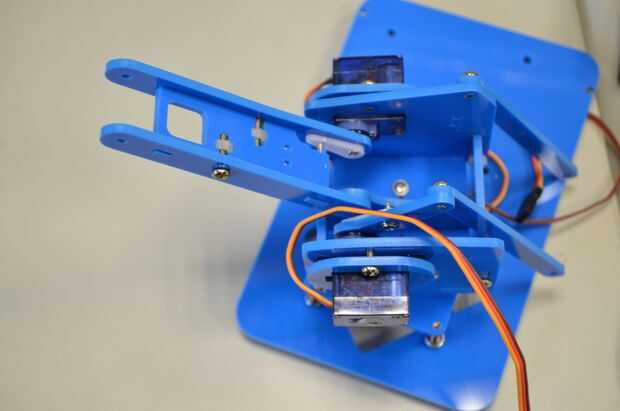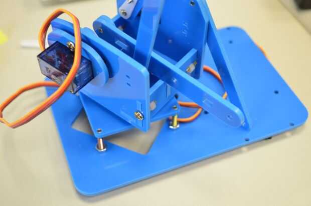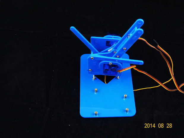 連結旋轉台與底座時,請注意:1.確認底座舵機齒輪已經順時鐘旋轉至底, 2. 將手臂旋轉台於底座的3點鐘方向合體 (如圖四).