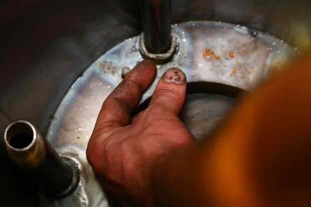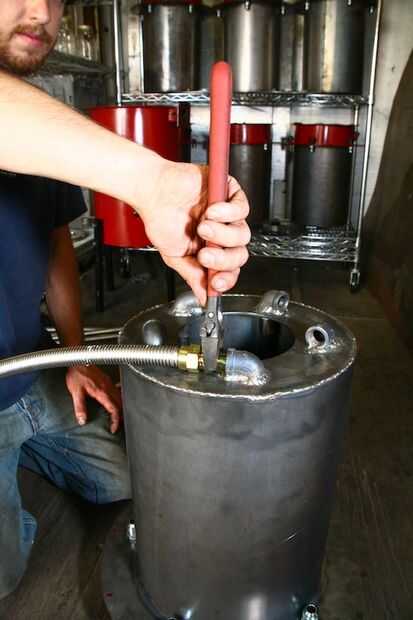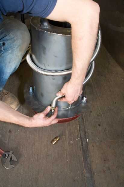 -Doblar un ángulo de 90 grados cerca de cuatro o cinco pulgadas desde el extremo del gas de la línea y atornille en el acoplamiento adjunto.