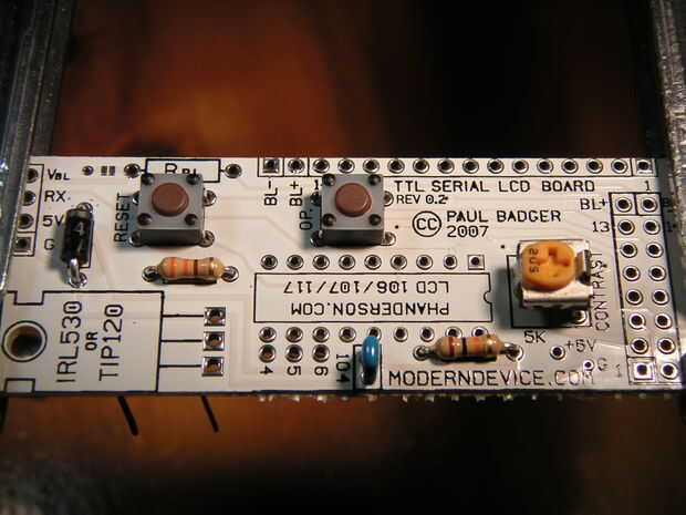 Montar la resistencia variable. Esto es donde se ajusta el contraste del texto de pantalla.