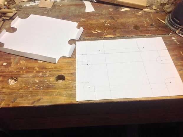 Dibujar una plantilla sobre un trozo de cartulina. Transferir o copiar la plantilla a otro trozo de cartulina. Utilice la segunda pieza de cartulina para hacer un prototipo. Asegúrese de que todos los conectores y botones del iPad no estén obstruidos. Ajuste la plantilla de maestros si es necesario.