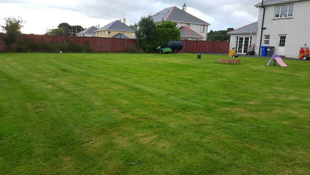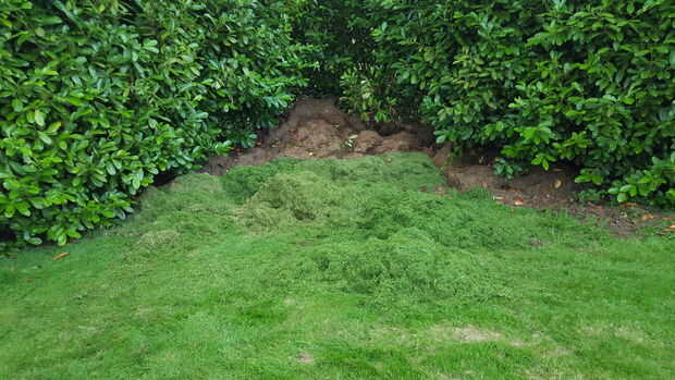 Me encendió el cortacésped, tomó una vuelta por el jardín y dije mis oraciones... dedica las hojas... y WHAMMO!!!!!! comenzó a cortar el césped... YEP, bit demasiado dramática eh! de todos modos... así que sí, las hojas giro... la hierba se corta... y a mi delicia! sí, adivinaron it.. fluía perfectamente en la caja sin una gota en el césped!