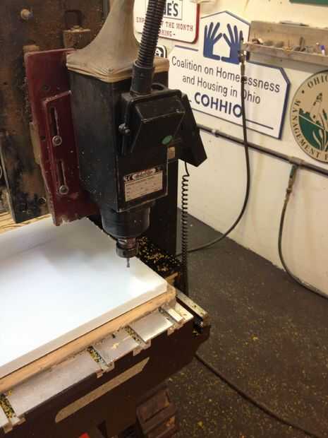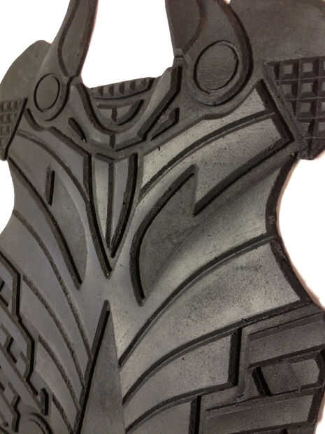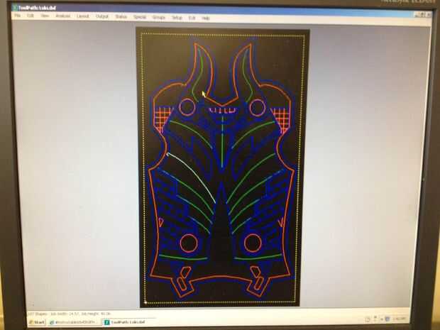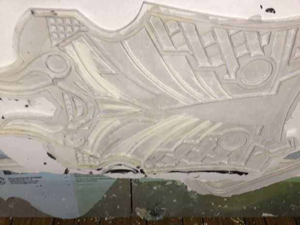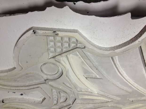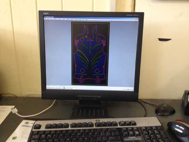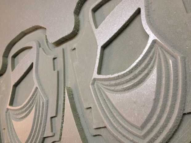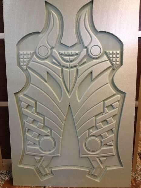 Una vez finalizado el último paso tendrá que establecer los valores de su máquina CNC y empezar a cortar, la máquina debe cortarlo un maestro espuma perfecta del diseño CAD, deje que su rip! Tienes que usar diferentes tamaños y diferentes tipos de brocas para darle el corte deseado y los efectos. Una vez que se cortan los maestros limpiar y lijar un poco tienes una copia perfecta de tu archivo CAD vierta yeso y hacer un molde de su armadura.