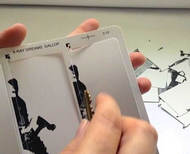 Ahora es el momento para perforar el tirón tarjetas. Estos se realizan con un papel bonito, pesado, por lo que son bastante sólidos. Usted notará que hay pequeñas fichas o piñones en ambos lados. Estas piezas todavía son un poco delicadas y definitivamente no quiere romperlos. Es absolutamente posible perforar estas tarjetas a mano, pero hay dos herramientas que pueden ayudar a mantenerlos intactos.