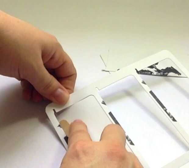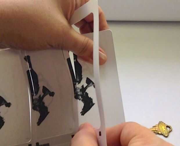 Una opción es utilizar una clave. Apoye el extremo de la llave de negocio en una ficha de empuje hacia abajo hasta que salga hacia fuera, lo mismo a la otra pestaña y luego perforar el resto de la tarjeta con los dedos. Otra buena herramienta es un palito. Utilice el lado fino para apoyar la ficha que usted salte hacia fuera.