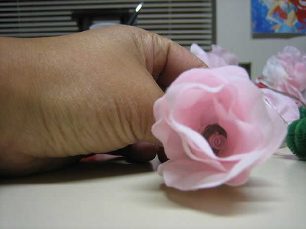 6. firmemente envolver el limpiador de pipa verde alrededor de la base para mantener las flores en su lugar y para darle un poco de un tallo.