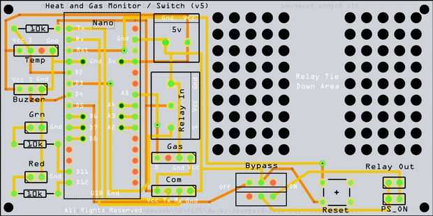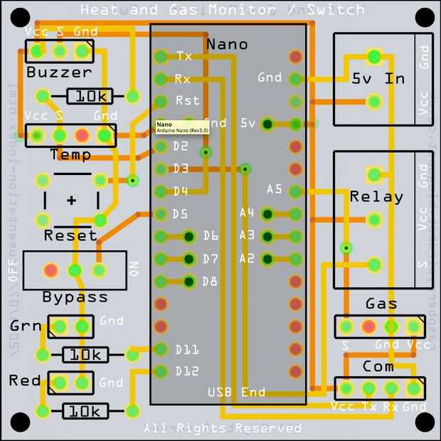 Lo PCB también tiene un punto de conexión del puerto serie de Arduino para la salida de información de diagnóstico con el esquema que impulsa al monitor. El monitor fue diseñado para una impresora 3D, pero podría ser utilizado para monitorear cualquier cosa de calor y gas donde debe activarse un relé. Yo MQ-2 sensor de humo pero otros sensores MQ podrían ser utilizados para otros tipos de gas.