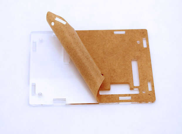 He encontrado que usando un cortador de cutícula funciona muy bien para empezar a pelar el papel protector de las piezas de acrílico. Sólo quieren pelar un poco pedazo de esquina y luego tire hacia atrás el papel con los dedos hasta que sale completamente. Hacer esto para todas las piezas de acrílico.