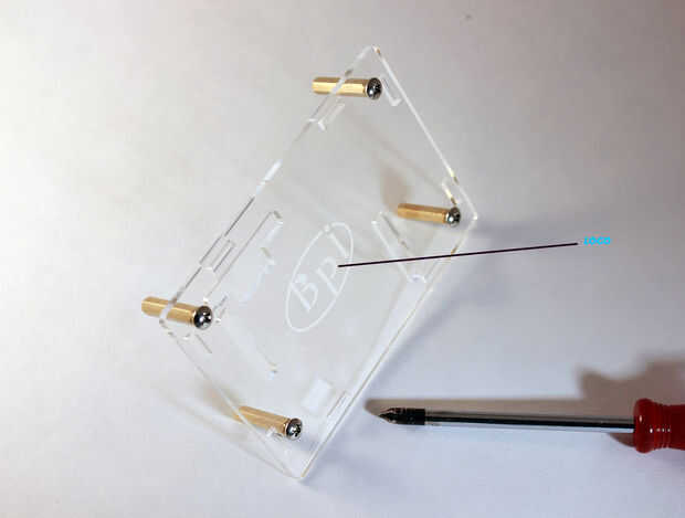 La primera pieza que desee comenzar con es la placa superior, la placa superior es uno con el logo impreso. Mira esta imagen y prestar atención a la dirección de la poste hexagonal, el logo tiene que ser readeable (Asegúrese de no ponerlo al revés o el caso no se reunirá juntos correctamente).