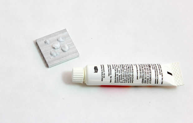 En este paso vas a montar el disipador sobre la CPU. Vas a necesitar un poco de compuesto térmico no conductor puede escoger un tubo pequeño en la tienda de tu equipo favorito durante un par de dólares. Se aplican unos puntos de compuesto térmico a la parte plana para el disipador de calor. Ahora busque la CPU como se muestra en la foto de arriba y coloque el disipador sobre la CPU y presione suavemente hacia abajo asegurándose de que el compuesto térmico es esparcido sobre la superficie de la CPU pero no tan difícil que se fracture la Junta. El compuesto termal sostenga el disipador en su lugar y con el tiempo será seco y ser pegado a él.