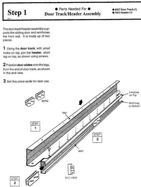 En el paso uno montamos la cabecera de pista de la puerta y conseguirlo fuera del camino. Esta es una de las piezas que se pueden hacer sin ayuda.