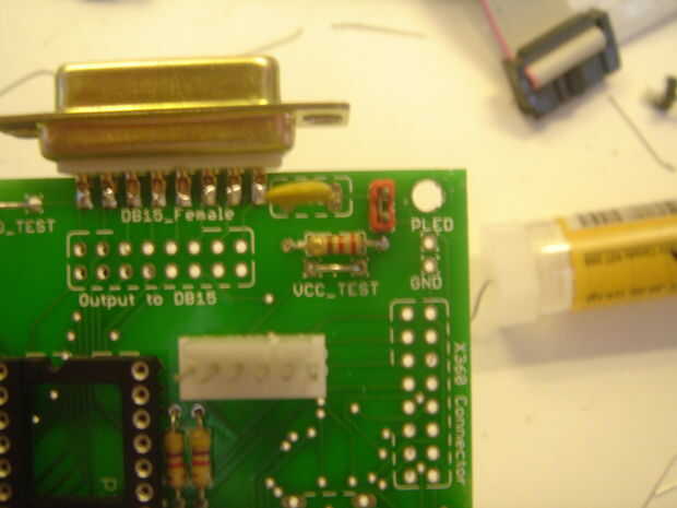 El valor de la resistencia es de 220 ohmios, que para la mayoría de los LEDs, medios sobre 20mA fluirá a través del LED. Para la mayoría de los LEDs, es un montón. Personalmente estoy usando un azul 5 m m LED en las siguientes imágenes. LEDs azules requieren más energía que los colores más comunes, como rojo y verde, por lo que este valor debe ser bueno para un solo LED de cualquier color. No se recomienda tratando de ejecutar un complemento completo de varios LEDs en forma de disco; puede requerir tanto jugo el PTC o puede saltar el fusible de la consola. Pero no dude en experimentar, siempre y cuando no es en ninguno de mi equipo personal.