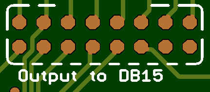 Inserte el conector como lejos abajo en el tablero como sea posible en el lugar marcado salida DB-15. La soldadura de un pin de la esquina a la Junta y compruebe que está acostado. Si el conector necesita ajuste, derretir la soldadura y ajuste. La esquina opuesta de la soldadura y revise de nuevo. Una vez que el conector esté correctamente configurado, siga adelante y los otros 14 pines de soldadura.