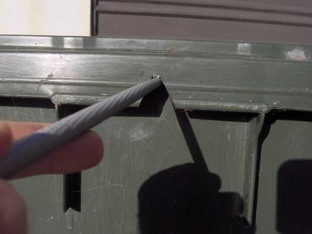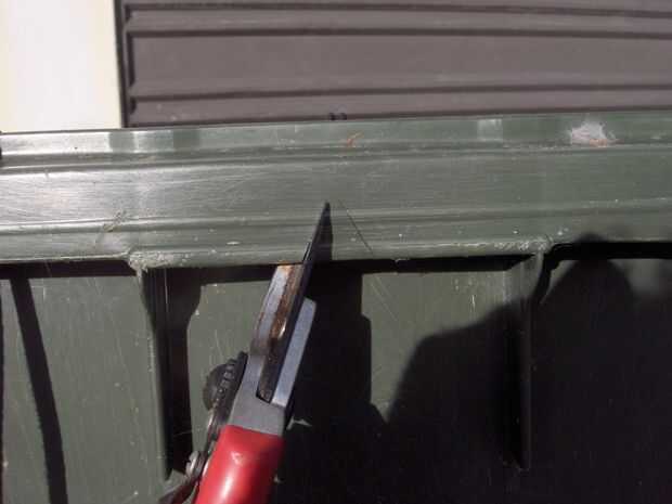 A medio camino a lo largo del labio bin por un lado, hacer dos cortes que casi unen y llegar a no más de a mitad de camino hasta el labio. El resto del labio es necesario para mantener el nudo que atará.