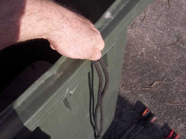 Baje el piso hasta la parte inferior del recipiente y repita el proceso con el fin de bucle de las cuerdas. Mina atada con el suelo un poco por encima de la parte inferior así que había un poco de tensión en la cuerda una vez que la leña estaba en - esto mantiene las cuerdas acomodadas en las muescas.