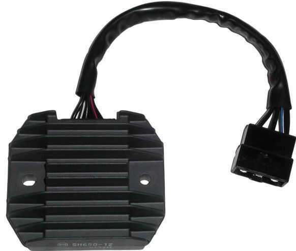 Por lo tanto, si es una unidad de rectificador regulador de una sola pieza de una bicicleta hecha por uno de los "cuatro grandes" fabricantes japoneses (Kawasaki, Honda, Suzuki y Yamaha) con un sistema de carga de 12v, debe hacer el trabajo. Hay rarezas ocasionales que utilizan alternadores de la bobina de campo, pero éstos tienen generalmente un separado regulador y rectificador. Cualquier moto sobre 250cc y después de 1985 tendrán un sistema de carga de 12v.