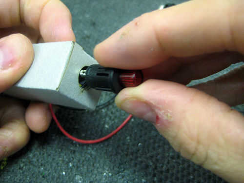 A continuación, inserte el interruptor. Asegúrese de que la cresta localizar el interruptor se alinee con la muesca en el agujero. Es un apretón apretado en la caja, así que tenga cuidado con este paso y utilice un destornillador pequeño para manipular los cables y el PCB para alojar el interruptor de. Una vez que el camino está claro, el interruptor debe deslice sin resistencia y agarre en el lugar.